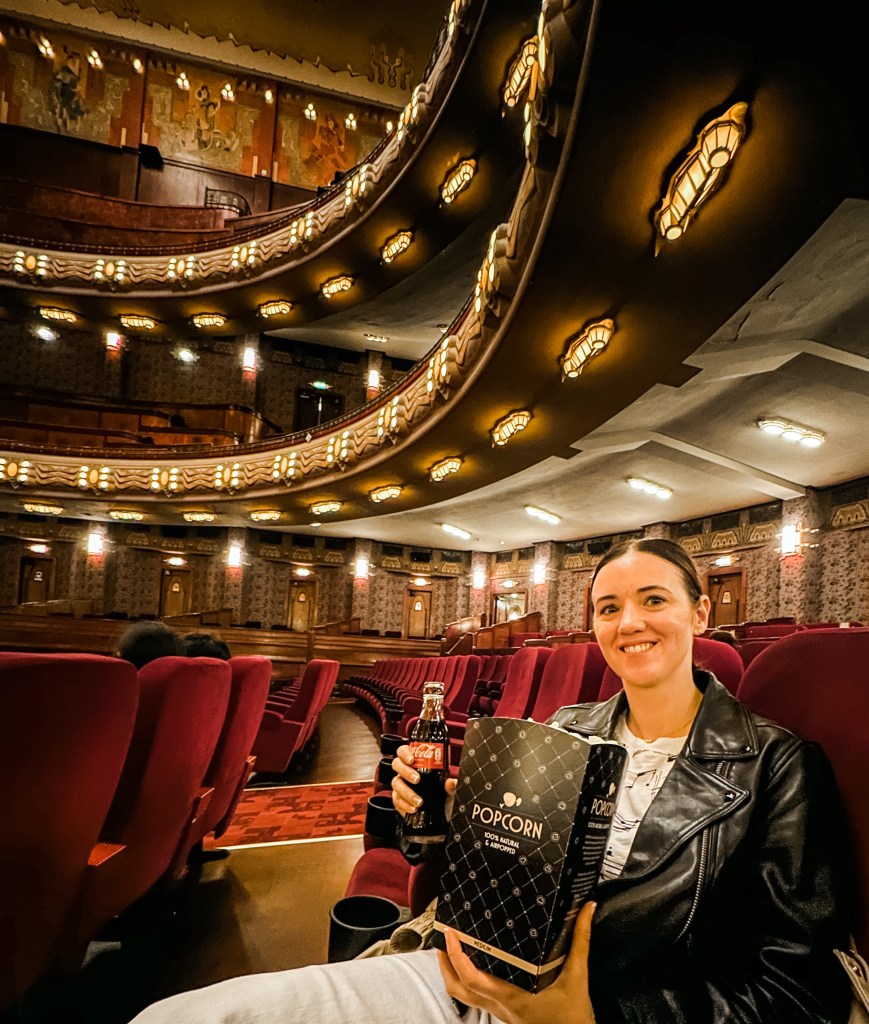 The inside was gorgeous, the seats were comfy, and they served popcorn and coke in the classy glass bottle.