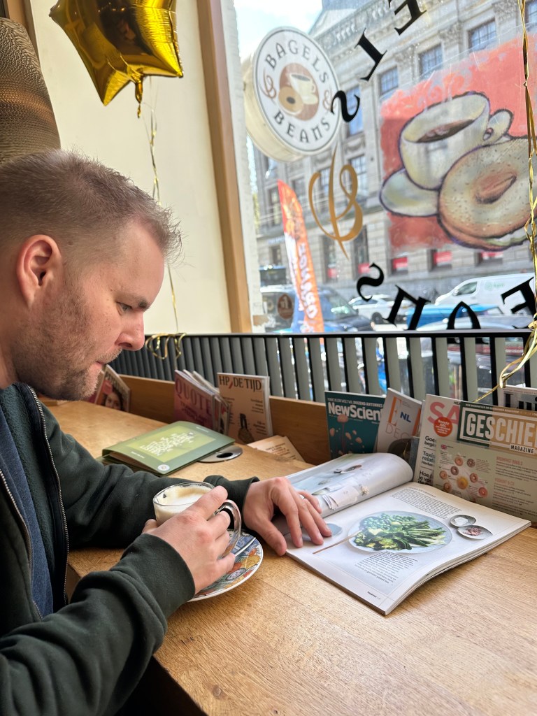While waiting for our bagels we did enjoy reading a Dutch magazine via help from google translate. especially enjoyable was the quiz about what “lifeforce” we were.
