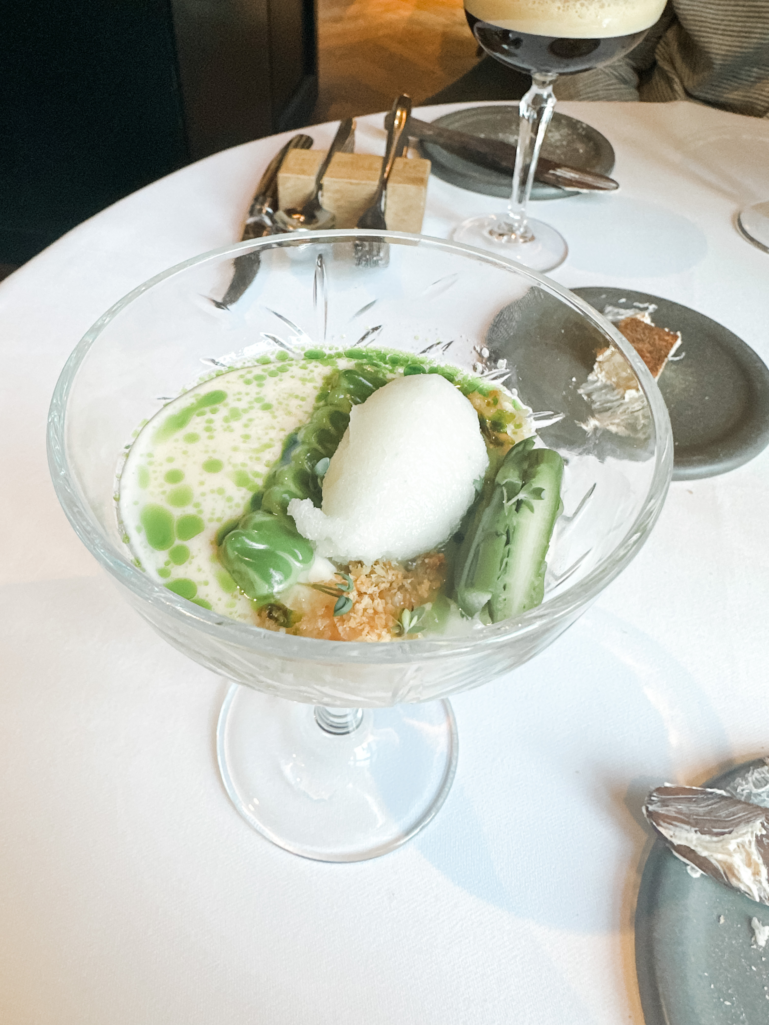 Somehow I didn’t end up with good pics of the meat dish (lamb) or the dessert (impossibly complicated but basically a lemon cake with some kind of gelato and meringue).