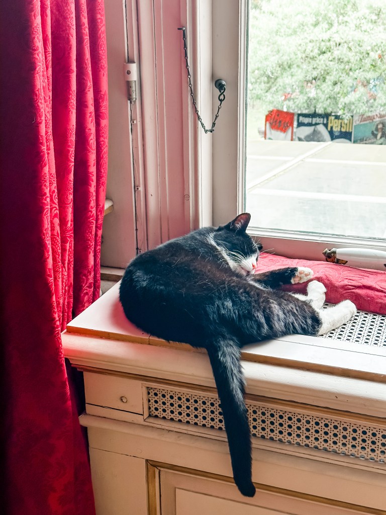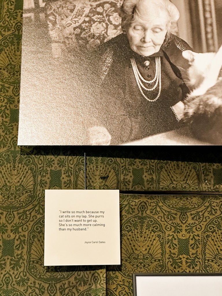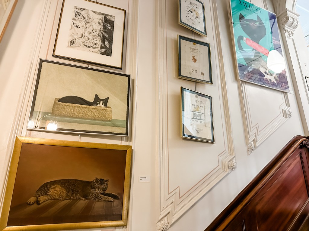 Also there are 3 actual cats who live in the museum. Two of them were wandering, but Oscar was so settled into what must have been his normal spot that there was a sign next to him telling his name and that he is grouchy. Which is maybe where the name comes from?