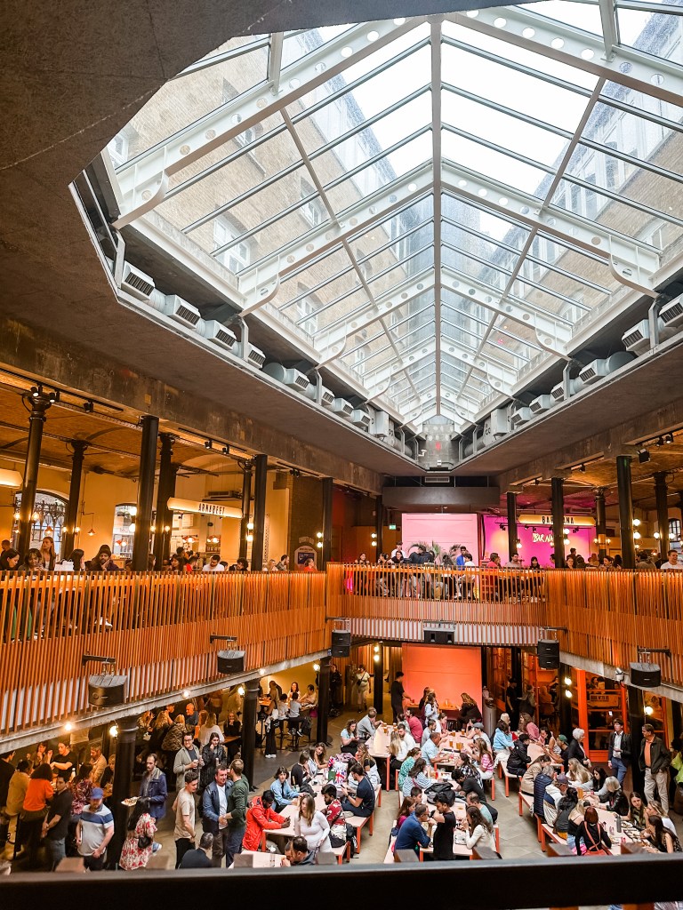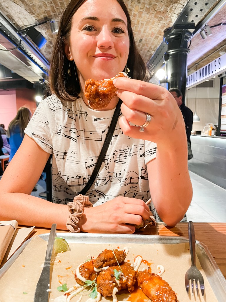 In homage to Agatha Christie the food hall was called Seven Dials Market, and we loved it. We had everything from Uzbek dumplings, to Syrian lamb, to guava glazed fried chicken. And AMAZING iced chai. The atmosphere was fun and lively, with lots of young people and live music.