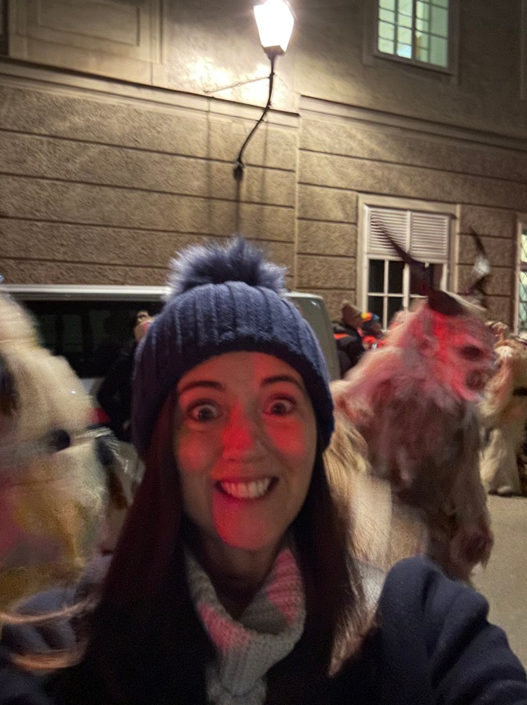 St Nikolaus is often accompanied by Krampus, his mean counterpart that punishes naughty children. The night before St Nikolaus Day they celebrate the arrival of both figures with the Krampus run, a parade event where (mainly) young men in the community dress up as Krampus and parade around town swatting people with switches and giving coal away. They also will go into restaurants, asking for donations for different charities.