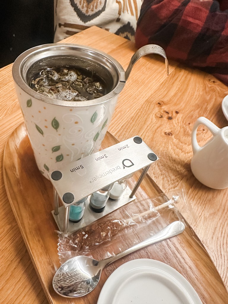Andrea and Ruby got something called a tee and rum, which was a mug of tea and shot of rum. We were all a bit surprised as Ruby doesn’t usually drink, and when Andrea poured her shot in, Ruby only did half.