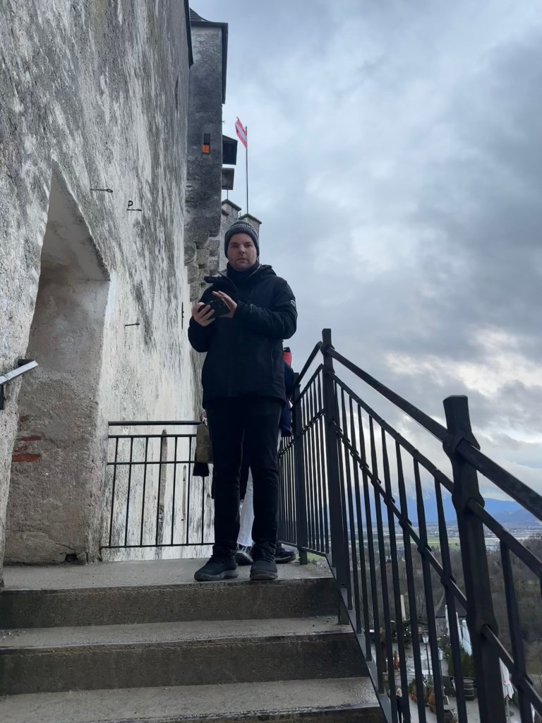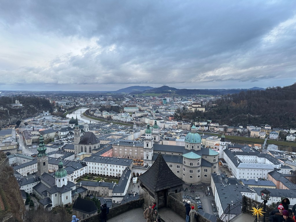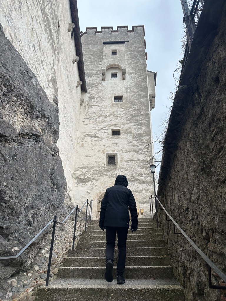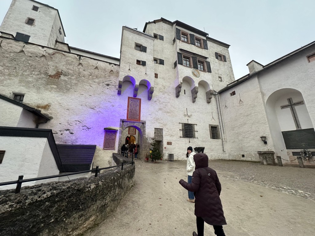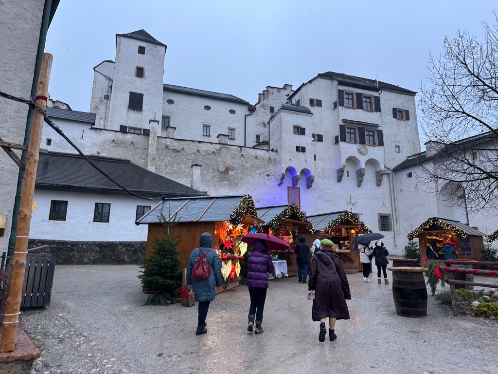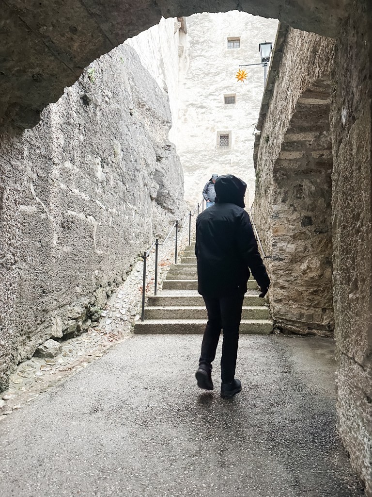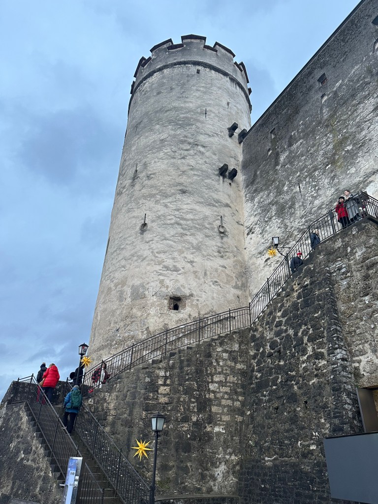 Once at the top of the fortress, a wind storm kicked up, dumping rain and hail on us. Jimmy and I were having flashbacks of getting stuck in the wind tunnel at the Cliffs of Moher, so I made a run for the inside of the castle, bypassing a great view of the city and a Christmas market.