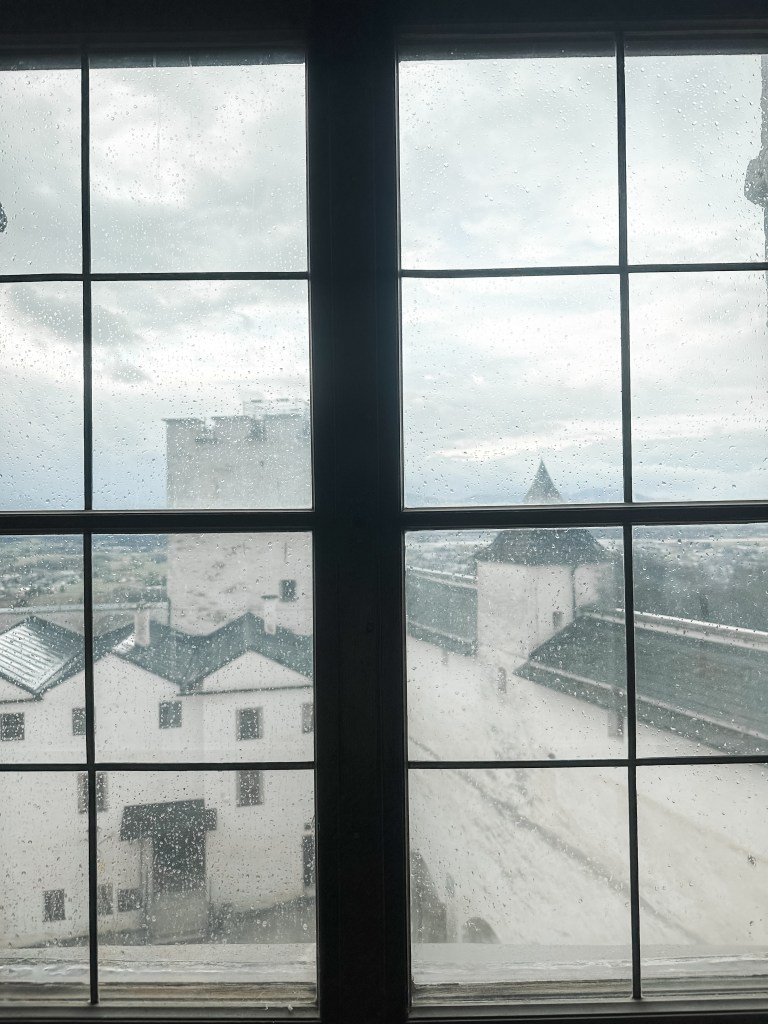 After breakfast we headed out in the rain to do our Rick Steves walk. For his walking Salzburg tour he has an audio version on his app, which we love because having ear pods in is a bit less conspicuous than reading chapters of his book.