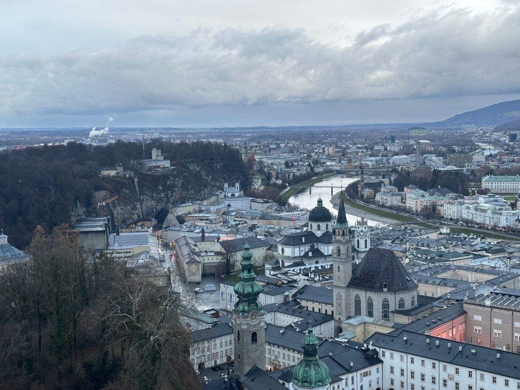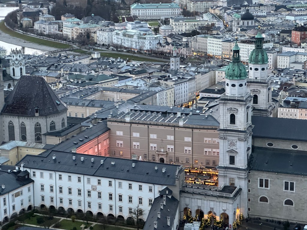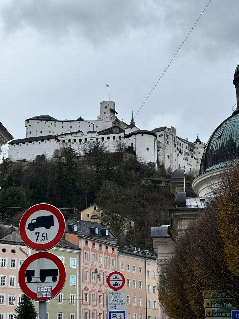 Salzburg truly beautiful, tucked in a little valley in the mountains with a river running through it that differentiates the medieval town from the “new town”. The new town includes the house Mozart was born in, so it’s only new by European standards.