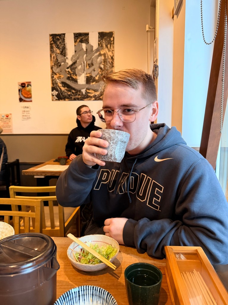It feels like it should be obvious but no cameras allowed in the Onsen, so no pics available for that. The Marriott had two pools in the women’s section, one indoors and one outdoors. The outdoor one was nice because you could see the snow and the trees, and it was very relaxing. I was the only one in there for most of the time I was there so it was a good place to get comfortable with it. They also had very clear instructions in English on proper etiquette which was nice for my first time. It had spouts with warm water for showering, and a nice area with hair dryers. This one was a bit fancier, which you can keep in mind for the public bathhouse experience that happens later in the trip.